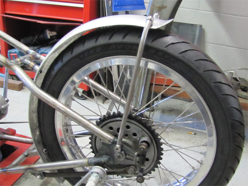 Should you decide you want a special custom fender with some extra inches on it, the option to get an extra long custom fender is available. Another fender option a strutless custom motorcycle fender.