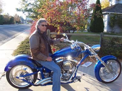 The theme of this Pro street chopper is flames and money. The ghost flames on the tins have dollar signs in them. I have flaming dollar signs on the seat and coil cover. It says "Money to Burn" on the oil bag. The mirror stems and shift linkage are billet flames. Smokin'. It took 1 year to complete and it was a blast! I'm ready to build another.